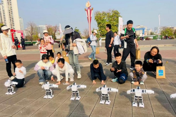 此次活动打破传统节日活动的单一模式,在活动终点设置科普大篷车互动展区,让参与者可以零距离感受科技魅力。灵活的机器狗会随着指令完成跳舞、握手等动作,垃圾分类、共振环、反应测试、左右脸对称、铁钉桥等丰富多彩的科普展品和趣味十足的益智小游戏,吸引了众多女性同胞和游园市民驻足参与。