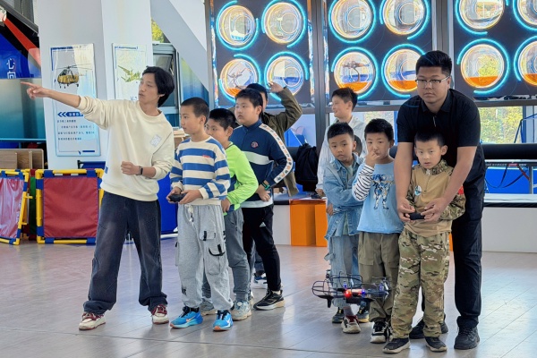 小朋友们在进行无人机操作体验