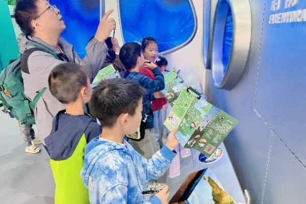 五楼生物多样性沉浸展内,一场趣味十足的生态闯关赛火热进行。孩子们手持闯关卡,在物种辨识、知识问答等任务中一路闯关,在游戏中深入了解各类生物的生存习性与保护意义。没有枯燥的知识灌输,只有沉浸式的趣味体验,孩子们在闯关过程中不仅解锁了生态知识,更在不知不觉中理解了人与自然和谐共生的意义,成为热爱自然、守护地球的小小行动派。